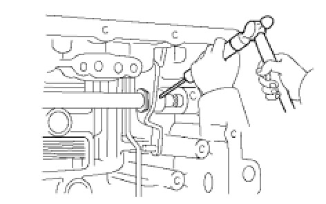 Slowly tap out the pin so that it will not fall into the transaxle.