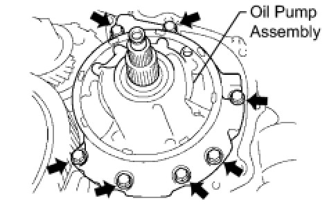 (a) Remove the 7 bolts and oil pump from the transaxle.