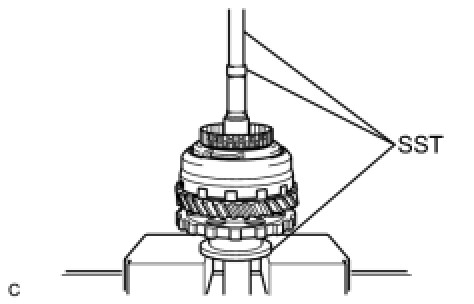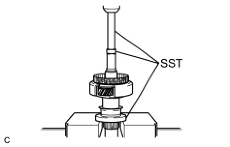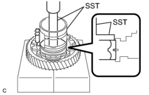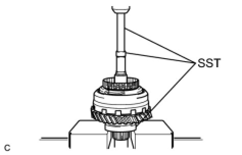 (c) Using SST and a press, press in the angular ball bearing inner race (front side).