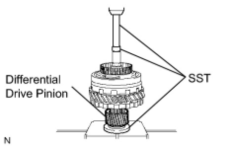 (d) Using SST and a press, press in the parking lock gear.