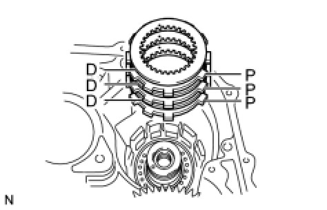 Firmly engage all the discs of the underdrive clutch with the hub splines of the underdrive planetary gear assembly.