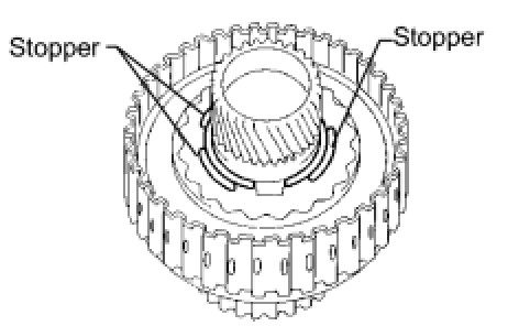 Do not align the end gap of the snap ring with any of the stoppers.