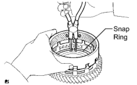 (e) Using a snap ring expander, install the snap ring to the underdrive clutch drum.