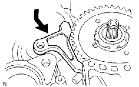 (b) Temporarily install the parking lock pawl, shaft and spring to the transaxle case as shown in the illustration.