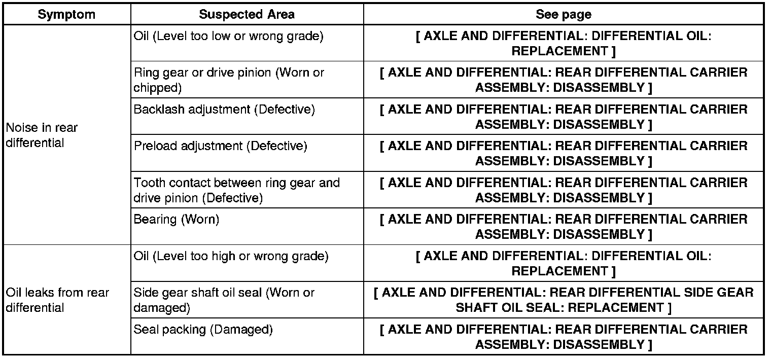 AXLE AND DIFFERENTIAL: DIFFERENTIAL SYSTEM: PROBLEM SYMPTOMS TABLE