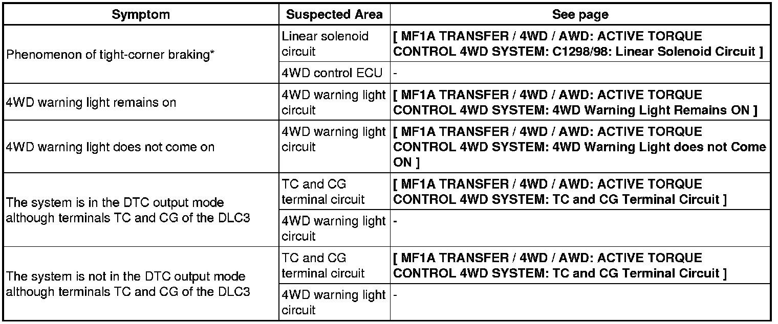 MF1A TRANSFER / 4WD / AWD: ACTIVE TORQUE CONTROL 4WD SYSTEM: PROBLEM SYMPTOMS TABLE