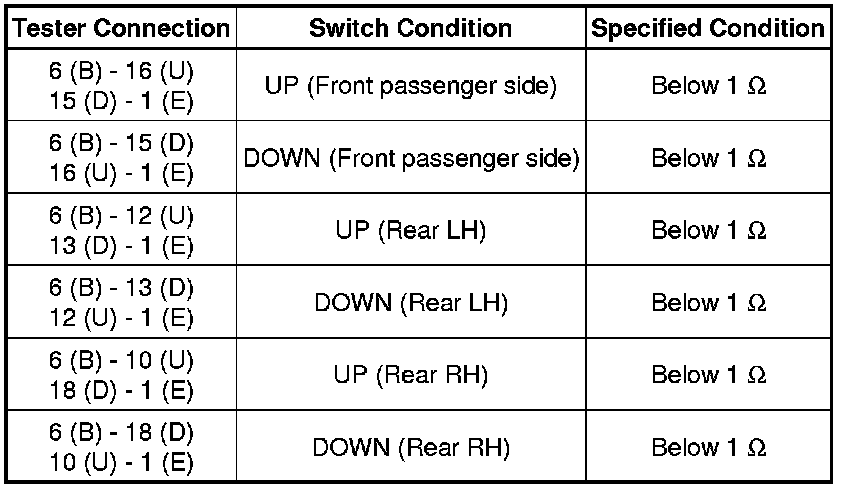 5. CHECK HARNESS AND CONNECTOR (MASTER SWITCH - FRONT PASSENGER, REAR LH/RH SWITCH)