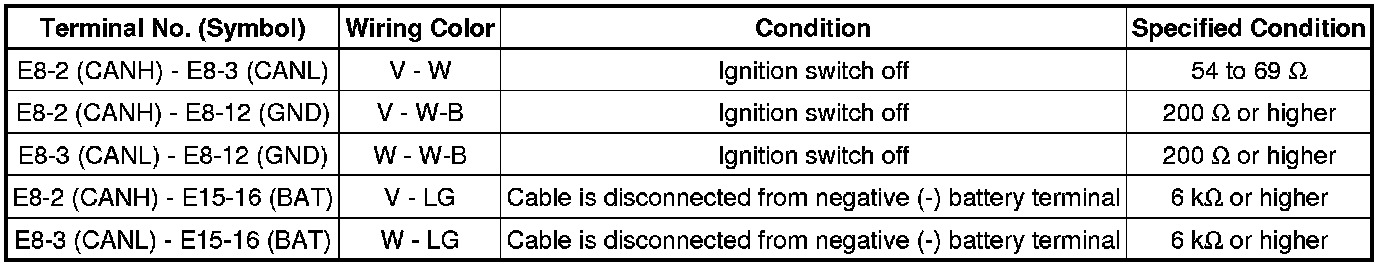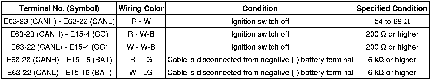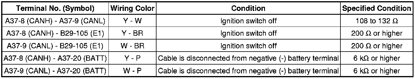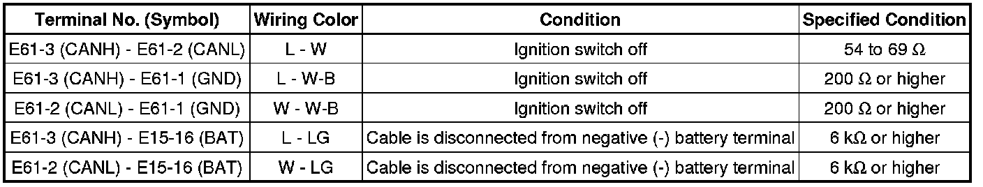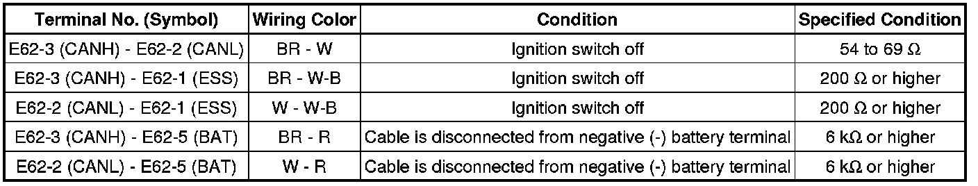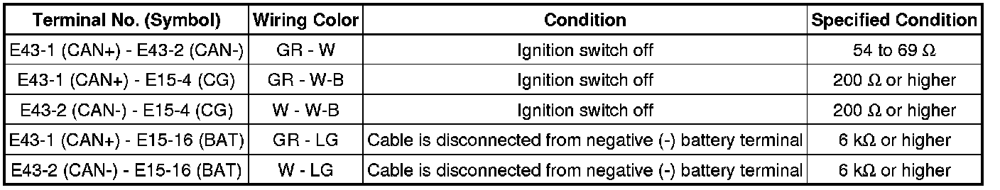 * Turn the ignition switch off before measuring the resistances of the CAN bus main wires and the CAN bus branch wires.