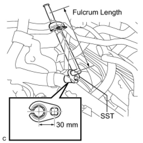 * The "with SST" torque value can be obtained by using a torque wrench with a fulcrum length of 300 mm (11.8 in.) and SST with a measurement of 30 mm (1.18 in.) Service Precautions.