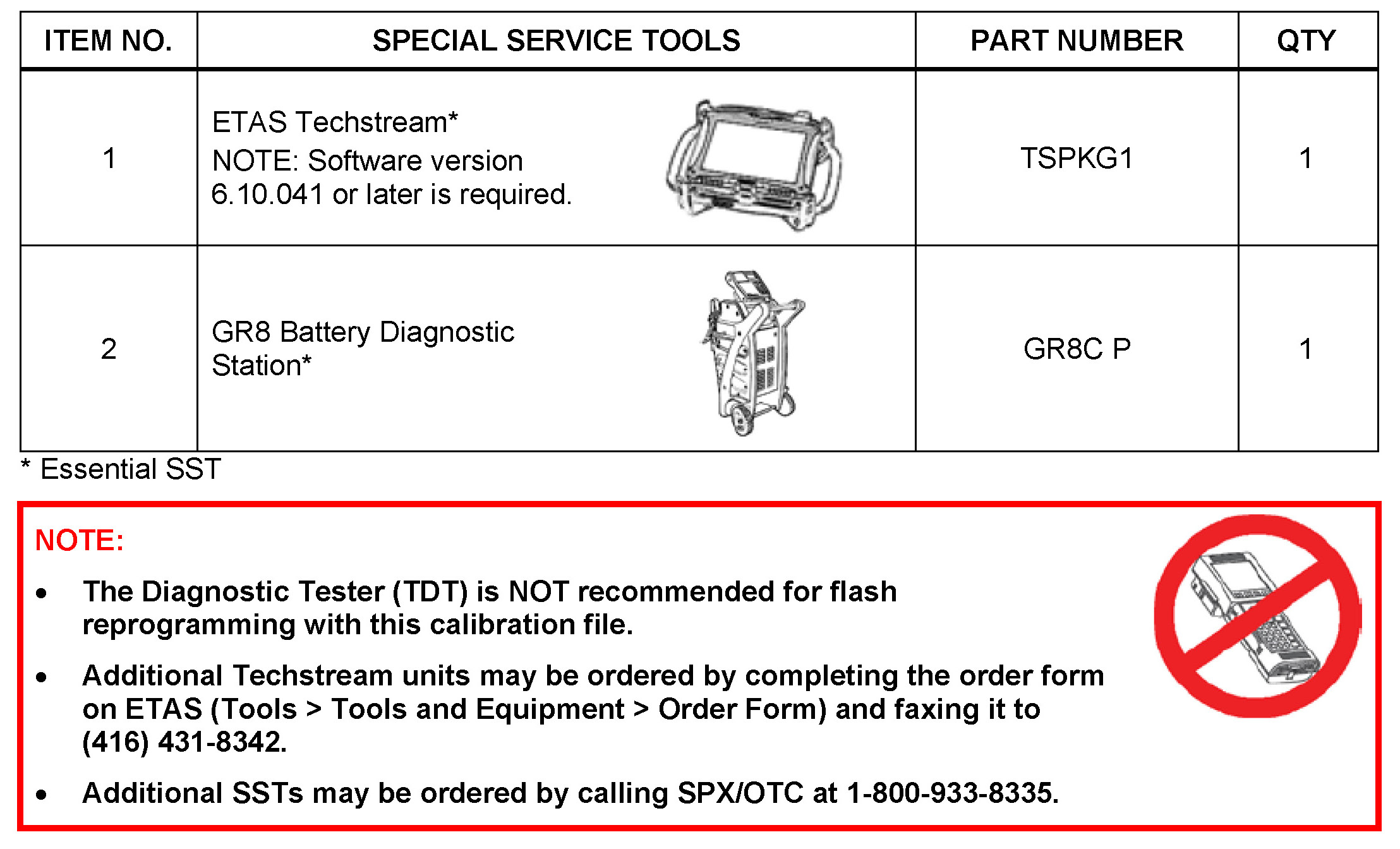 - For details on how to use the GR8 Battery Diagnostic Station, refer to the GR8 Battery Diagnostic Station Instruction Manual located on ETAS/TIS library > Tools > tools and equipment > GR8 Battery Diagnostic Station Instruction Manual.
