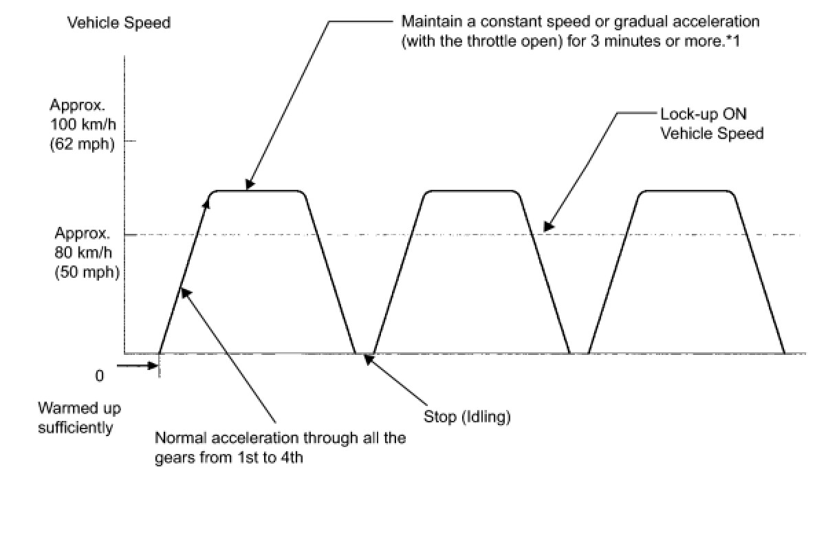 *1: Drive at such a speed in the uppermost gear, to engage lock-up. The vehicle can be driven at a speed lower than that in the above diagram under the lock-up condition.