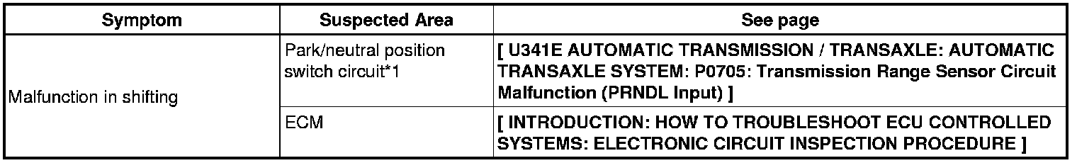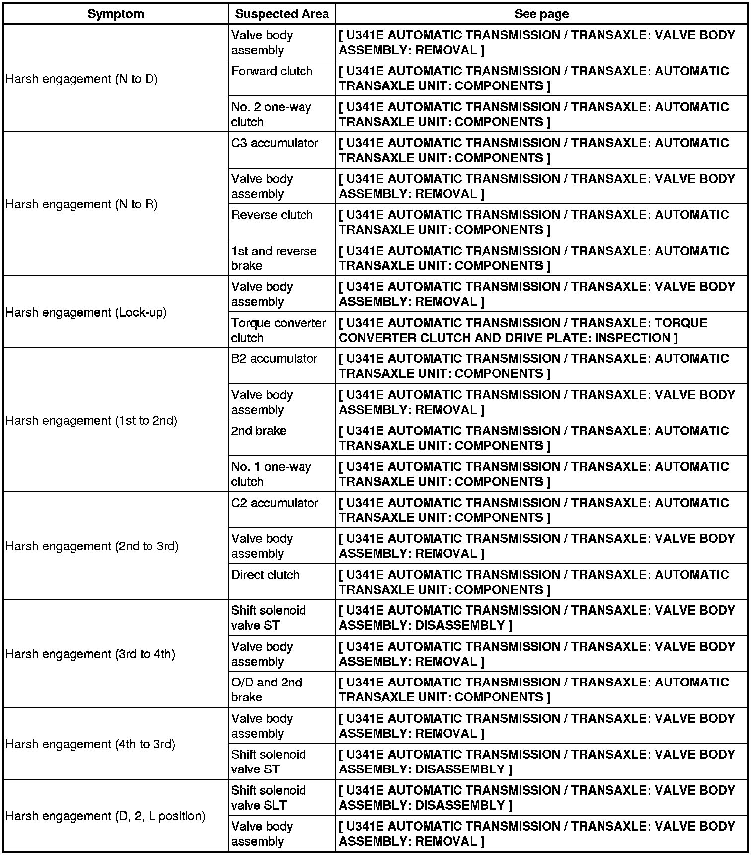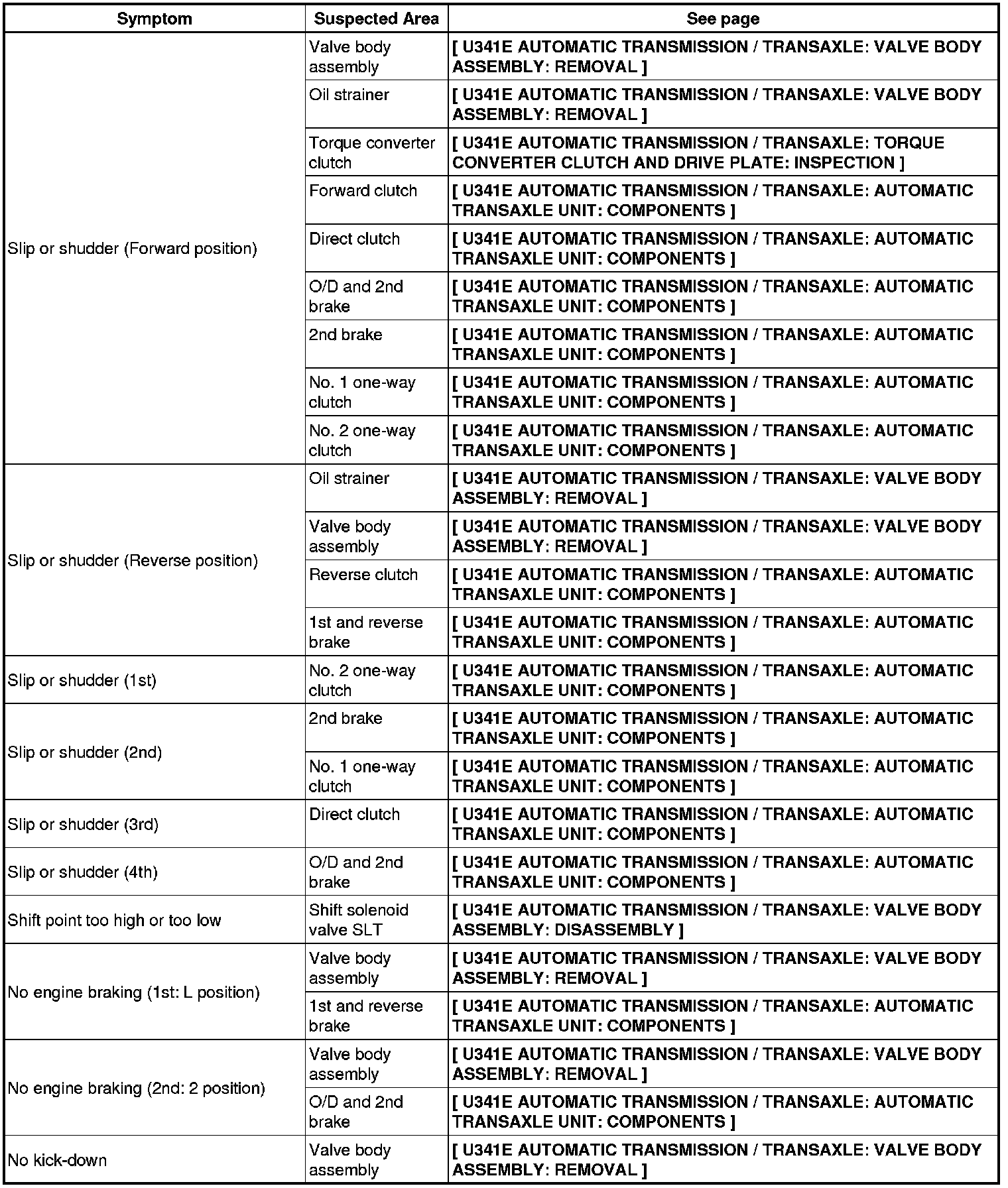 U341E AUTOMATIC TRANSMISSION / TRANSAXLE: AUTOMATIC TRANSAXLE SYSTEM: PROBLEM SYMPTOMS TABLE