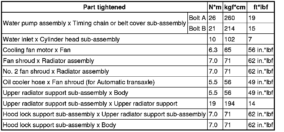 SPECIFICATIONS: 2ZR-FE COOLING: TORQUE SPECIFICATIONS