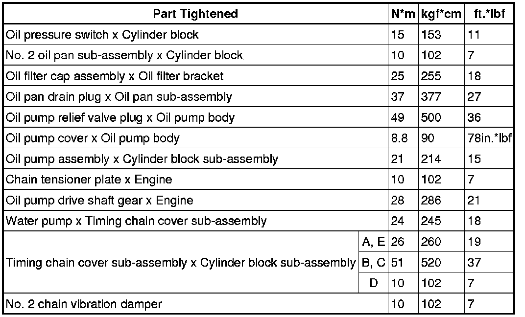 SPECIFICATIONS: 2ZR-FE LUBRICATION: TORQUE SPECIFICATIONS