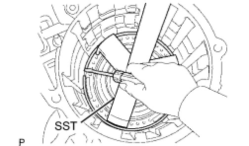 (b) Using SST, a press and a screwdriver, install the snap ring.