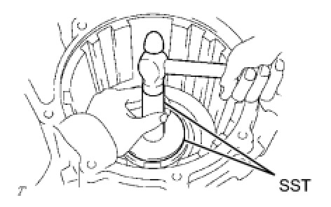 (a) Using SST and a hammer, install the counter drive gear bearing outer race LH to the transaxle case.