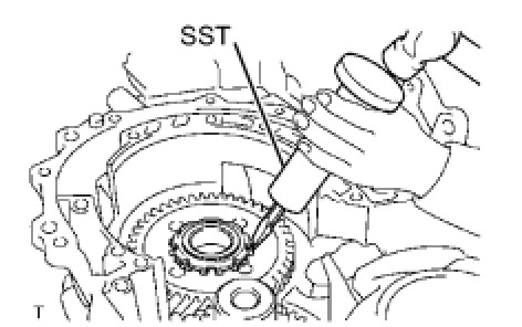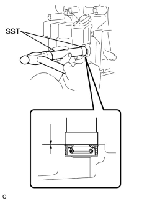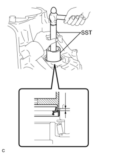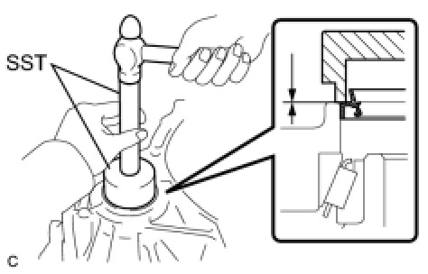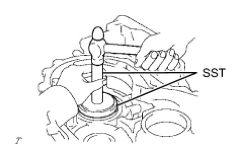 (b) Using SST and a hammer, drive in the No. 2 transaxle case oil seal.