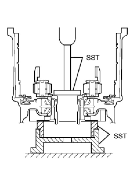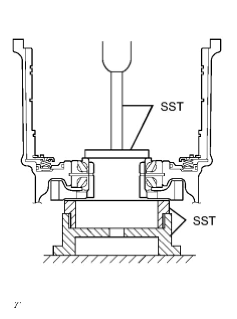 (b) Using SST and a press, install a new front drive pinion front tapered roller bearing to the transaxle housing.