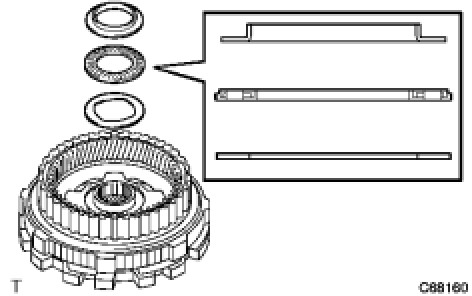 (a) Install the No. 2 thrust bearing race, the planetary gear thrust needle roller bearing and thrust bearing race to the rear planetary gear assembly.