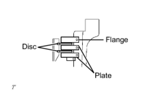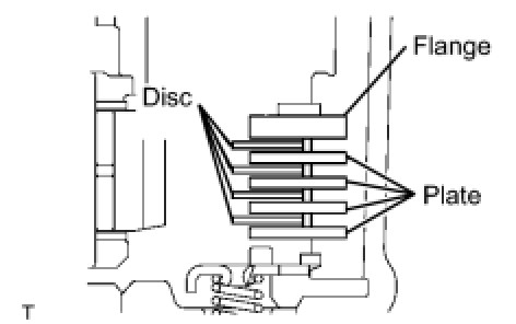 (a) Install the 4 plates, 4 discs and flange to the transaxle case.