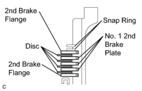 (a) Install the 4 discs, 3 No. 1 2nd brake plates and 2 2nd brake flanges to the transaxle case.