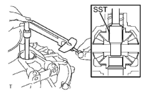 If the preload is not within the specifications, remove the differential from the transaxle case.