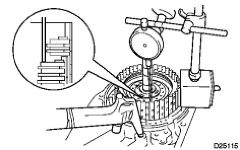 Therefore, while performing the check, press on the input shaft of the direct and reverse clutch using a press or the equivalent so that the pressure is not applied to the direct and reverse clutch.