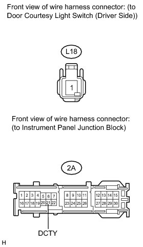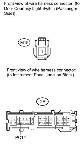6. CHECK HARNESS AND CONNECTOR (FRONT DOOR COURTESY LIGHT SWITCH - JUNCTION BLOCK)