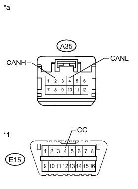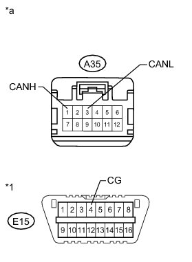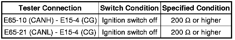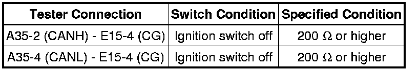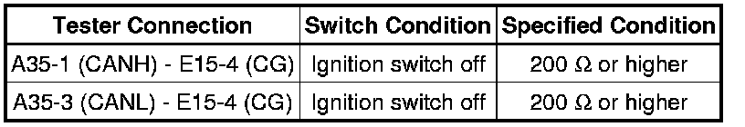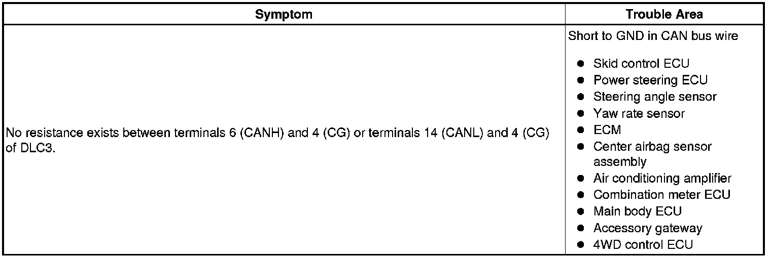There may be a short circuit between the CAN bus line and GND when there is no resistance between terminals 6 (CANH) and 4 (CG) or terminals 14 (CANL) and 4 (CG) of the DLC3.