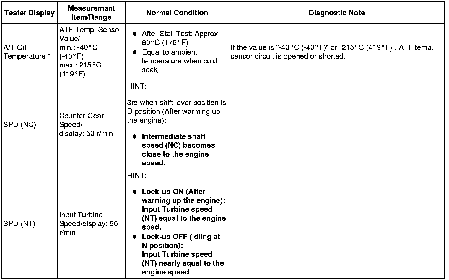 U250E AUTOMATIC TRANSMISSION / TRANSAXLE: AUTOMATIC TRANSAXLE SYSTEM: DATA LIST / ACTIVE TEST