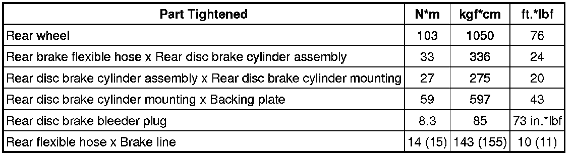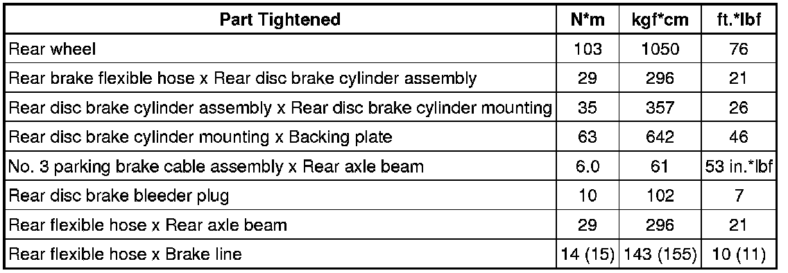 SPECIFICATIONS: BRAKE (REAR): TORQUE SPECIFICATIONS