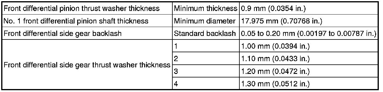 SPECIFICATIONS: E351 MANUAL TRANSMISSION / TRANSAXLE: SERVICE DATA