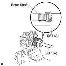 (d) Place the rotor shaft end into SST (A).