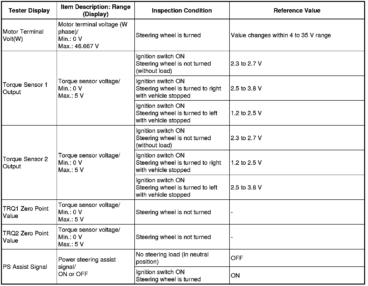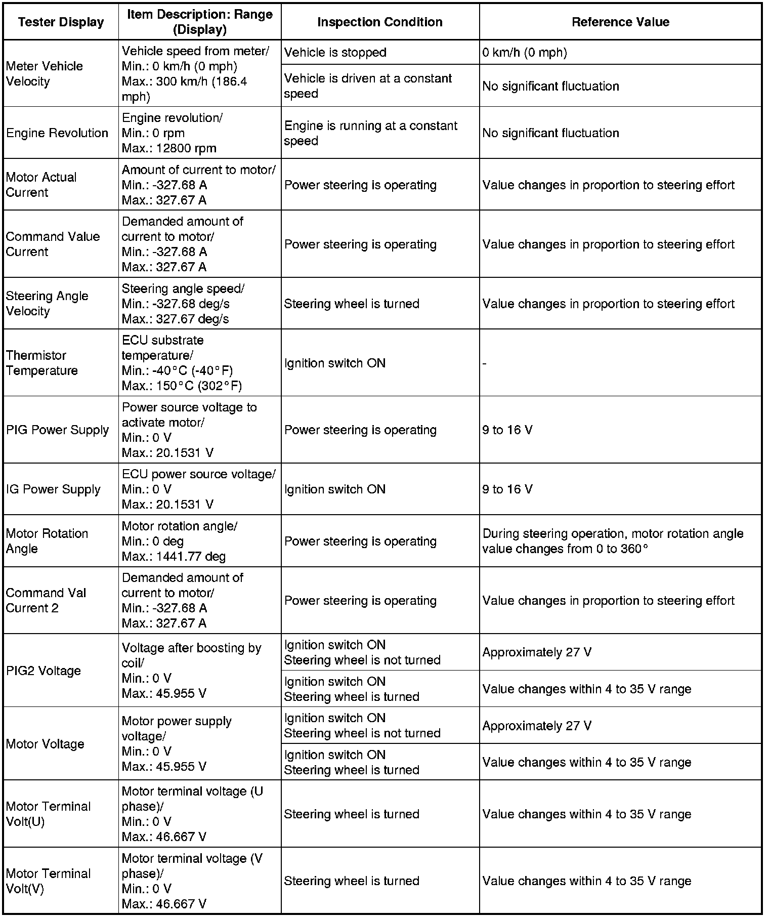 POWER ASSIST SYSTEMS: POWER STEERING SYSTEM: FREEZE FRAME DATA