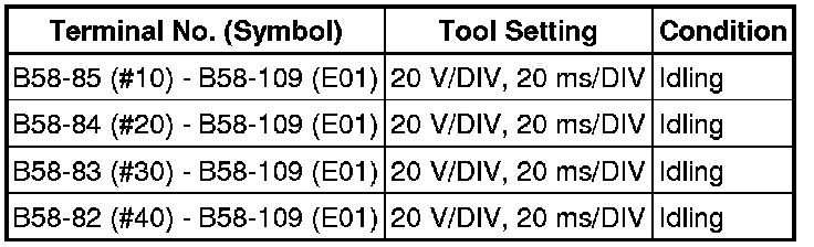 If the waveform is not similar to the illustration, check the waveform again after idling for 10 minutes or more.
