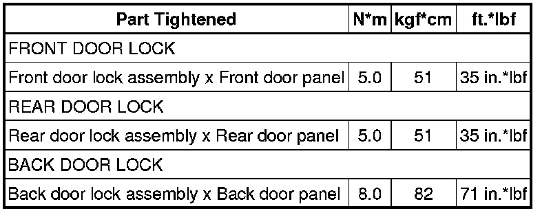 SPECIFICATIONS: DOOR LOCK: TORQUE SPECIFICATIONS