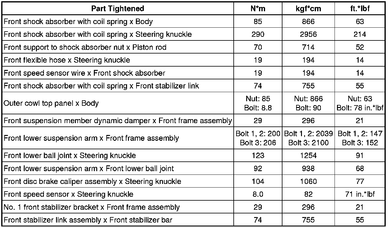 : TORQUE SPECIFICATIONS