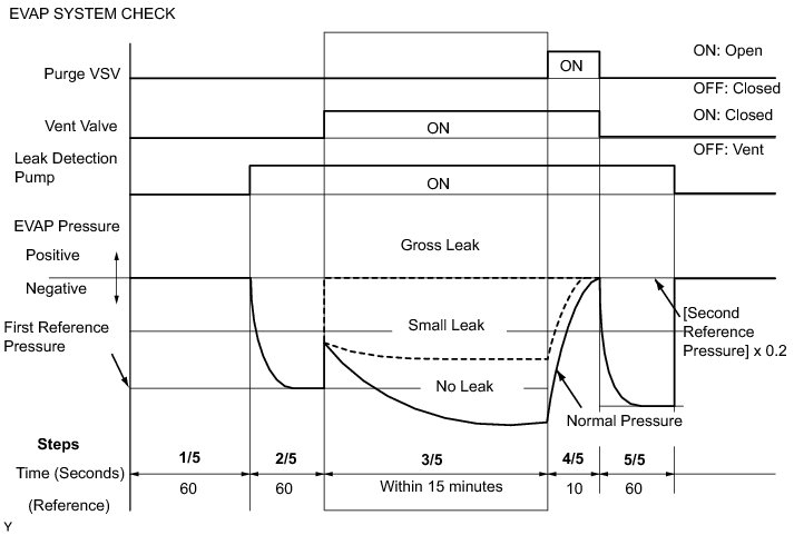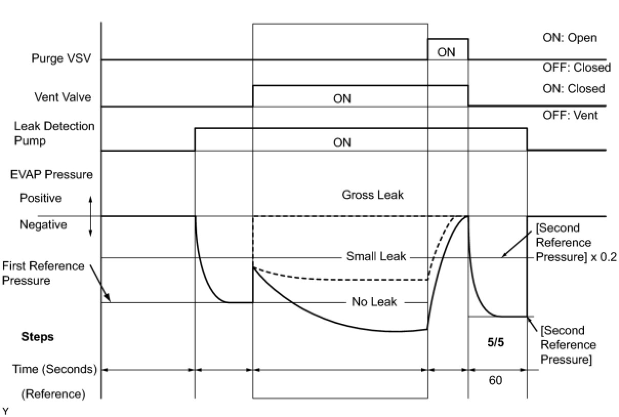 (b) Compare the EVAP pressure in step 3/5 and the second reference pressure (step 5/5).