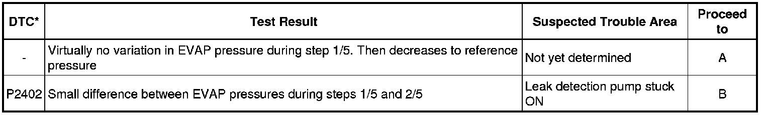 If the reference pressure difference between the first and second checks is greater than the specification, all the DTCs relating to the reference pressure (P043E, P043F, P2401, P2402 and P2419) are stored.