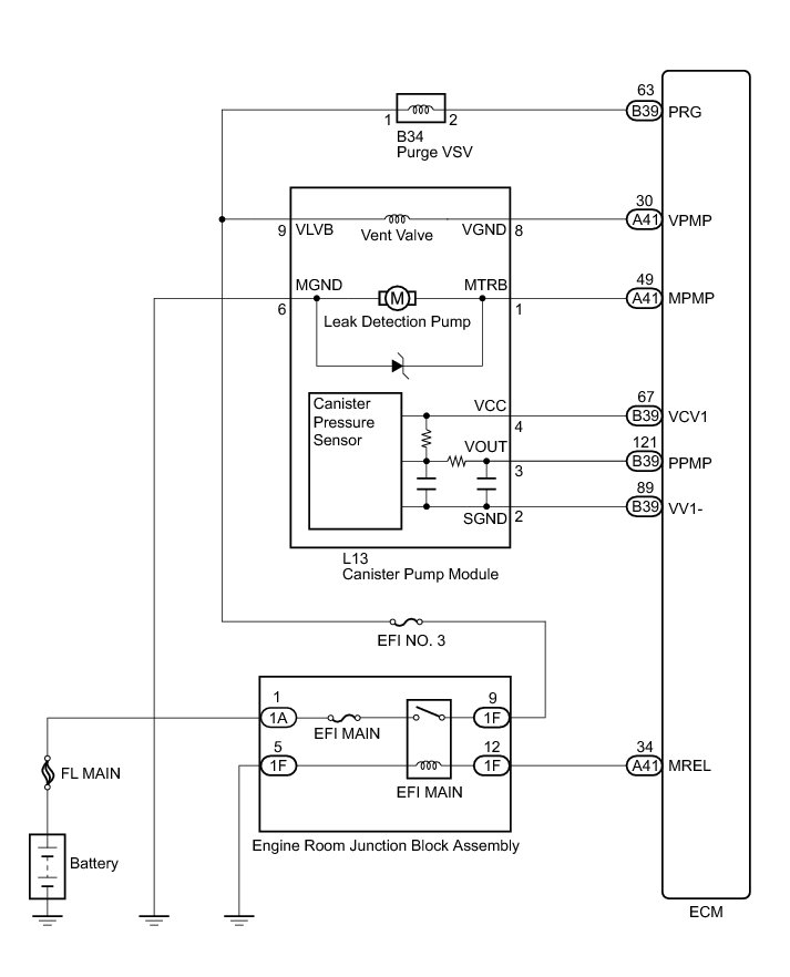B -- INSPECT CANISTER PUMP MODULE (POWER SOURCE FOR VENT VALVE)
