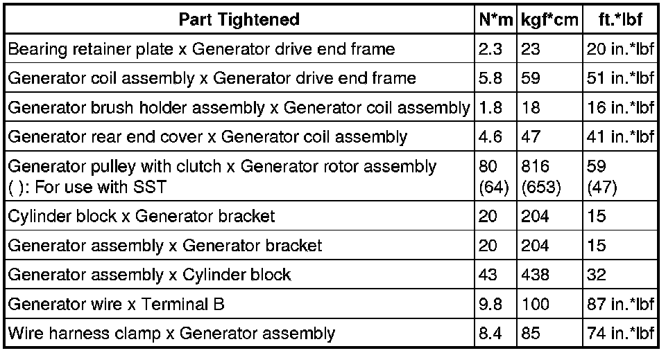 SPECIFICATIONS: 2GR-FE BATTERY / CHARGING: TORQUE SPECIFICATIONS
