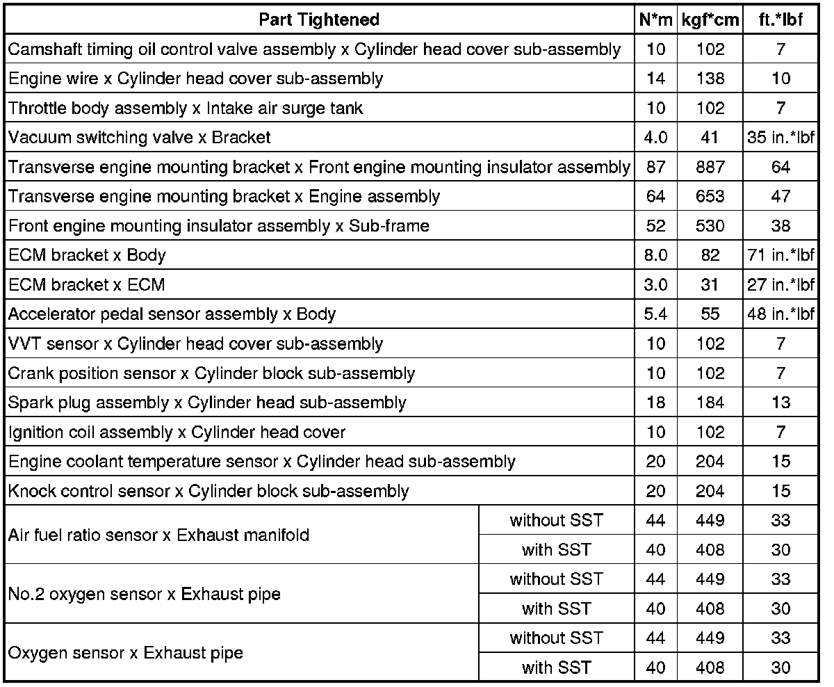 SPECIFICATIONS: 2GR-FE ENGINE CONTROL: TORQUE SPECIFICATIONS
