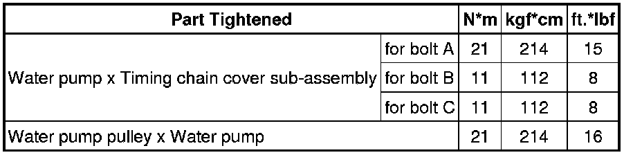 SPECIFICATIONS: 2GR-FE COOLING: TORQUE SPECIFICATIONS
