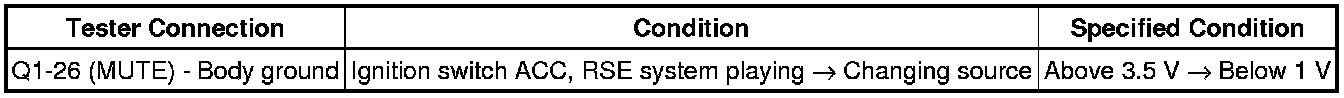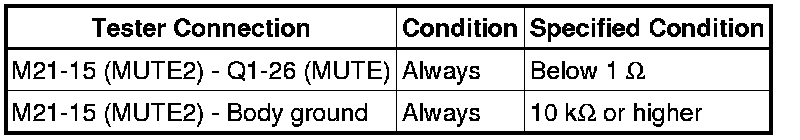 The MUTE signal is sent to reduce noise and a popping sound generated when switching the mode etc. If there is an open in the circuit, noise can be heard from the speakers when changing the sound source. If there is a short in the circuit, even though the navigation receiver assembly is functioning normally, no sound or only an extremely faint sound can be heard.