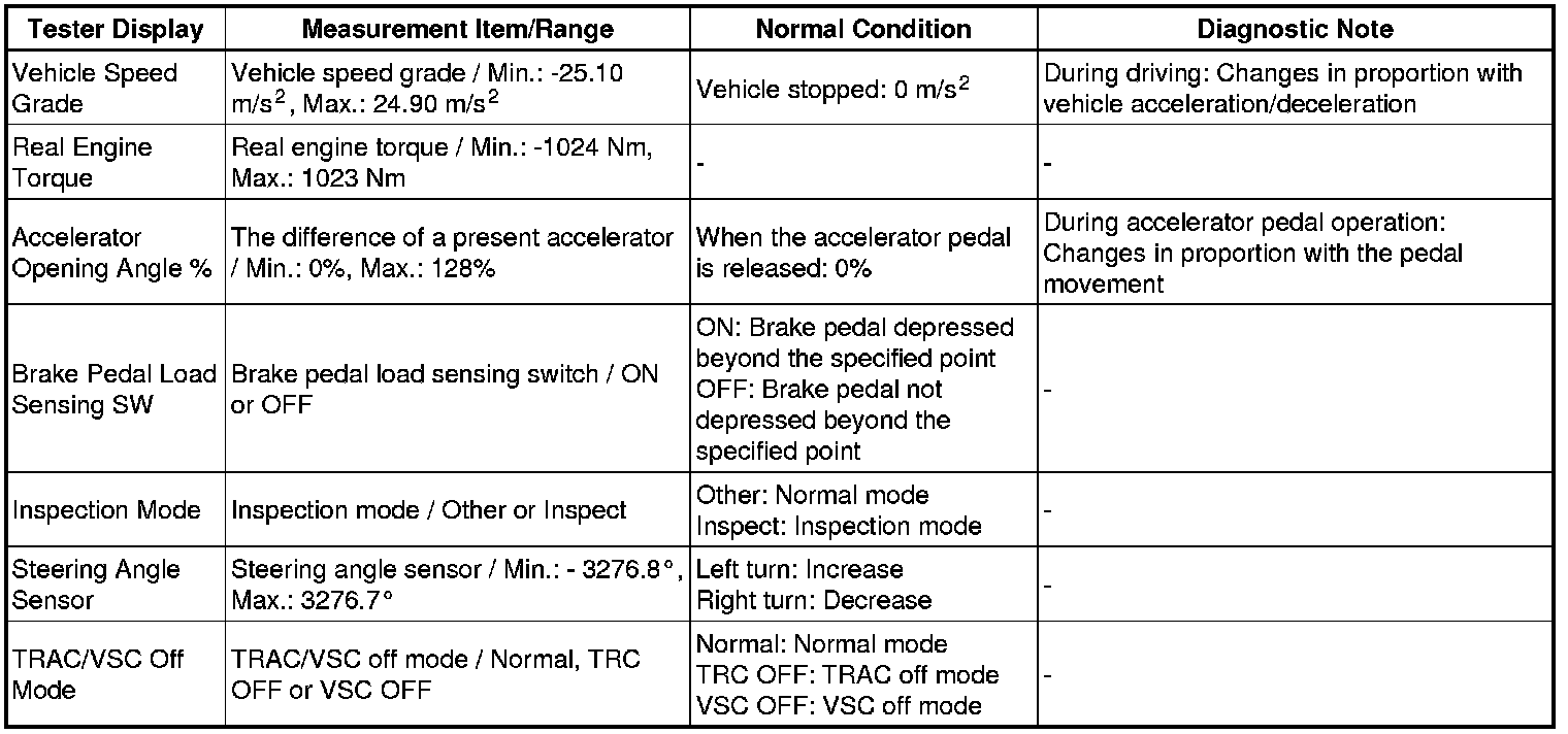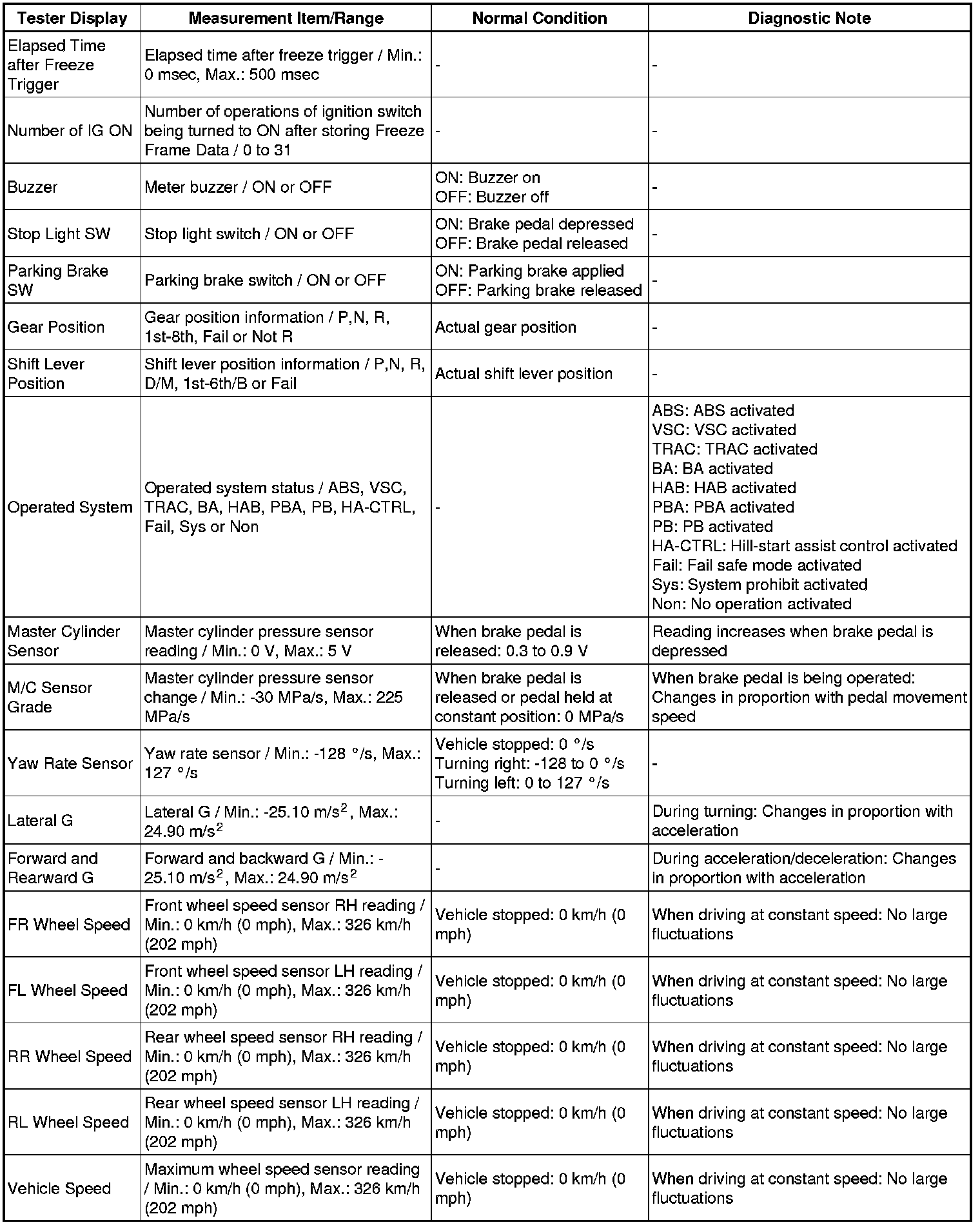 * Freeze Frame Data at the time the ABS operates: