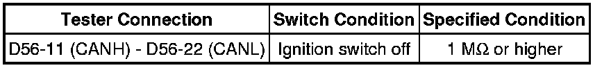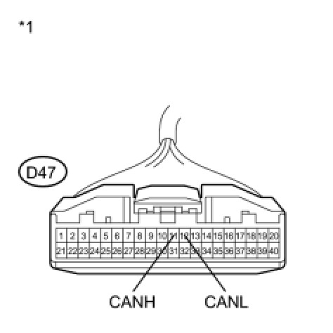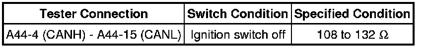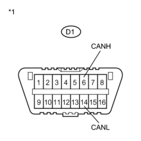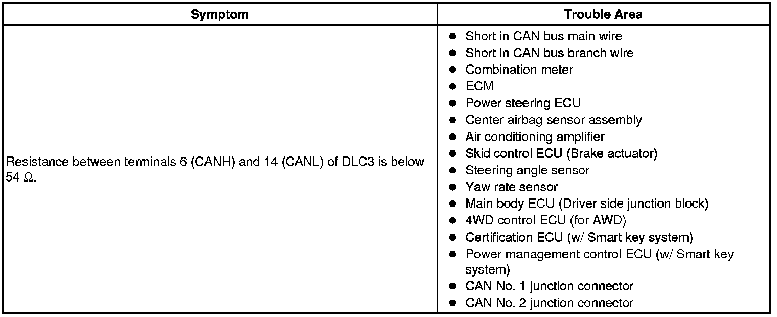 There may be a short circuit in the CAN bus main wire and/or CAN branch wire when the resistance between terminals 6 (CANH) and 14 (CANL) of the DLC3 is below 54 Ohms.