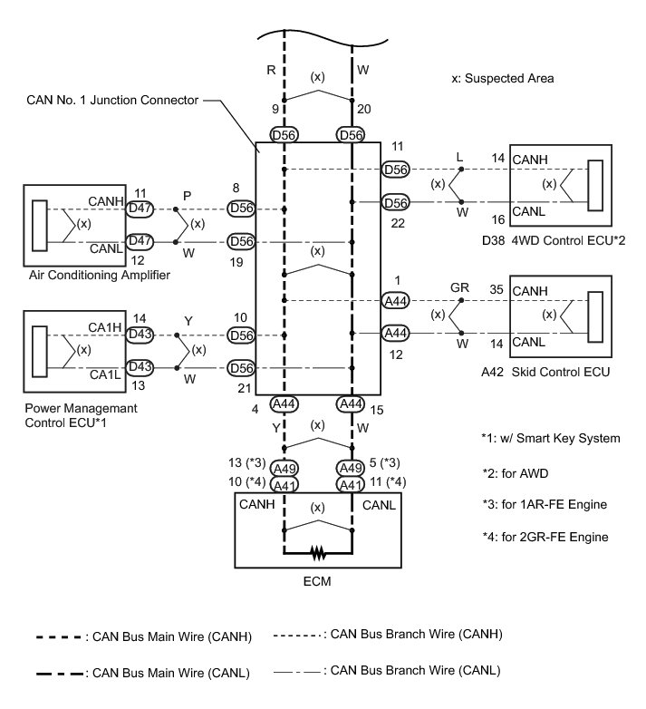 C -- REPAIR OR REPLACE CAN BUS BRANCH WIRE OR CONNECTOR (CAN NO. 1 JUNCTION CONNECTOR - 4WD CONTROL ECU)