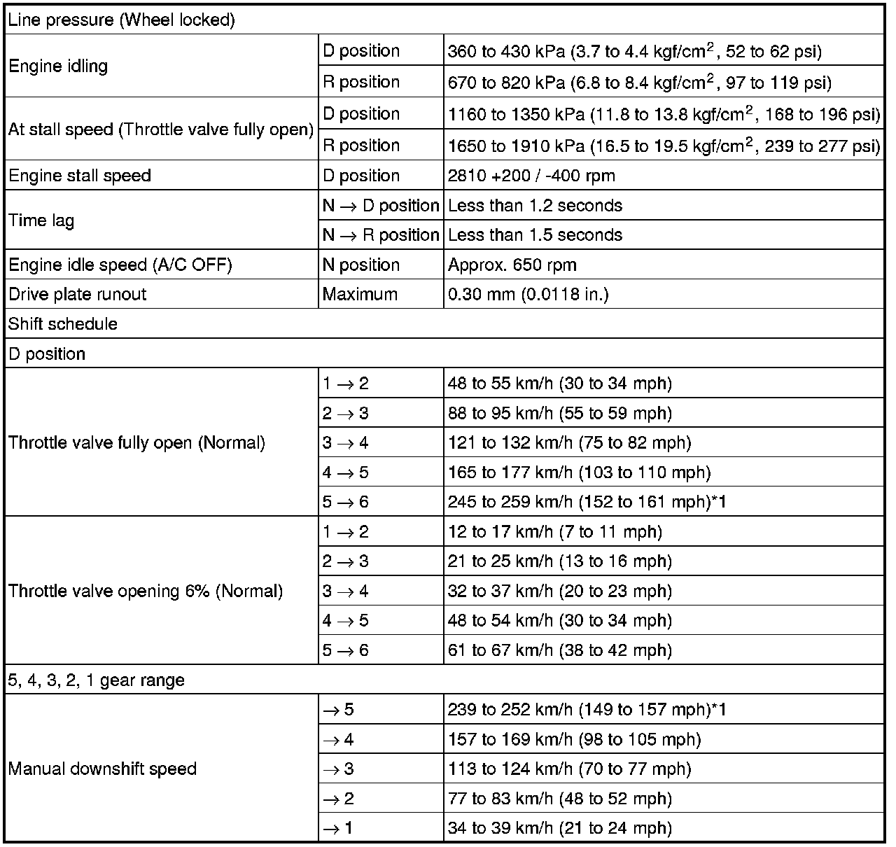 SPECIFICATIONS: U760E AUTOMATIC TRANSMISSION / TRANSAXLE: SERVICE DATA