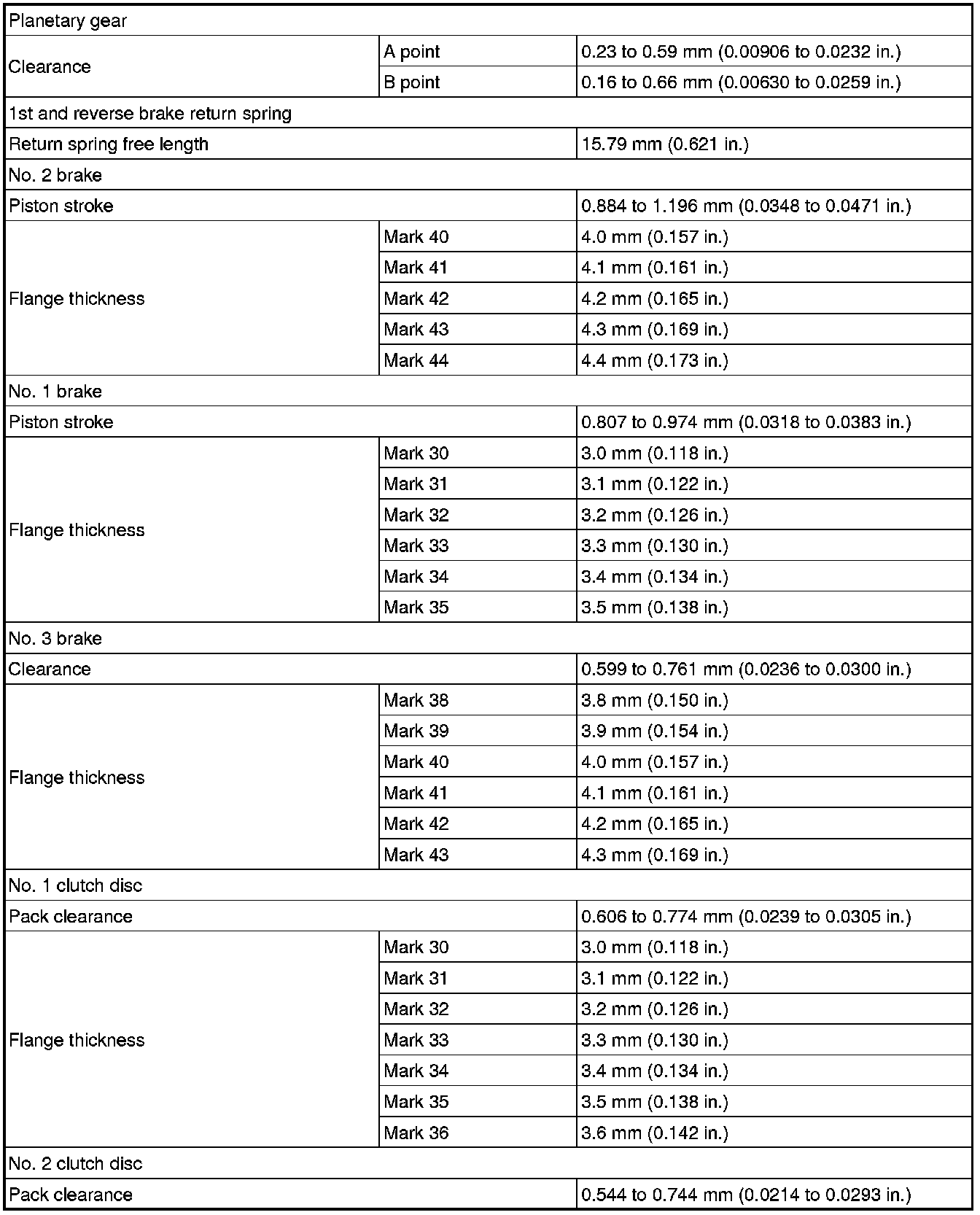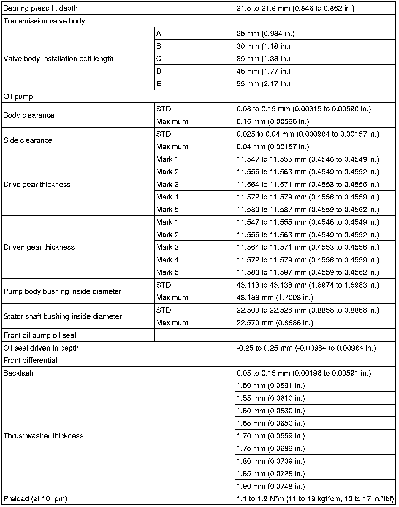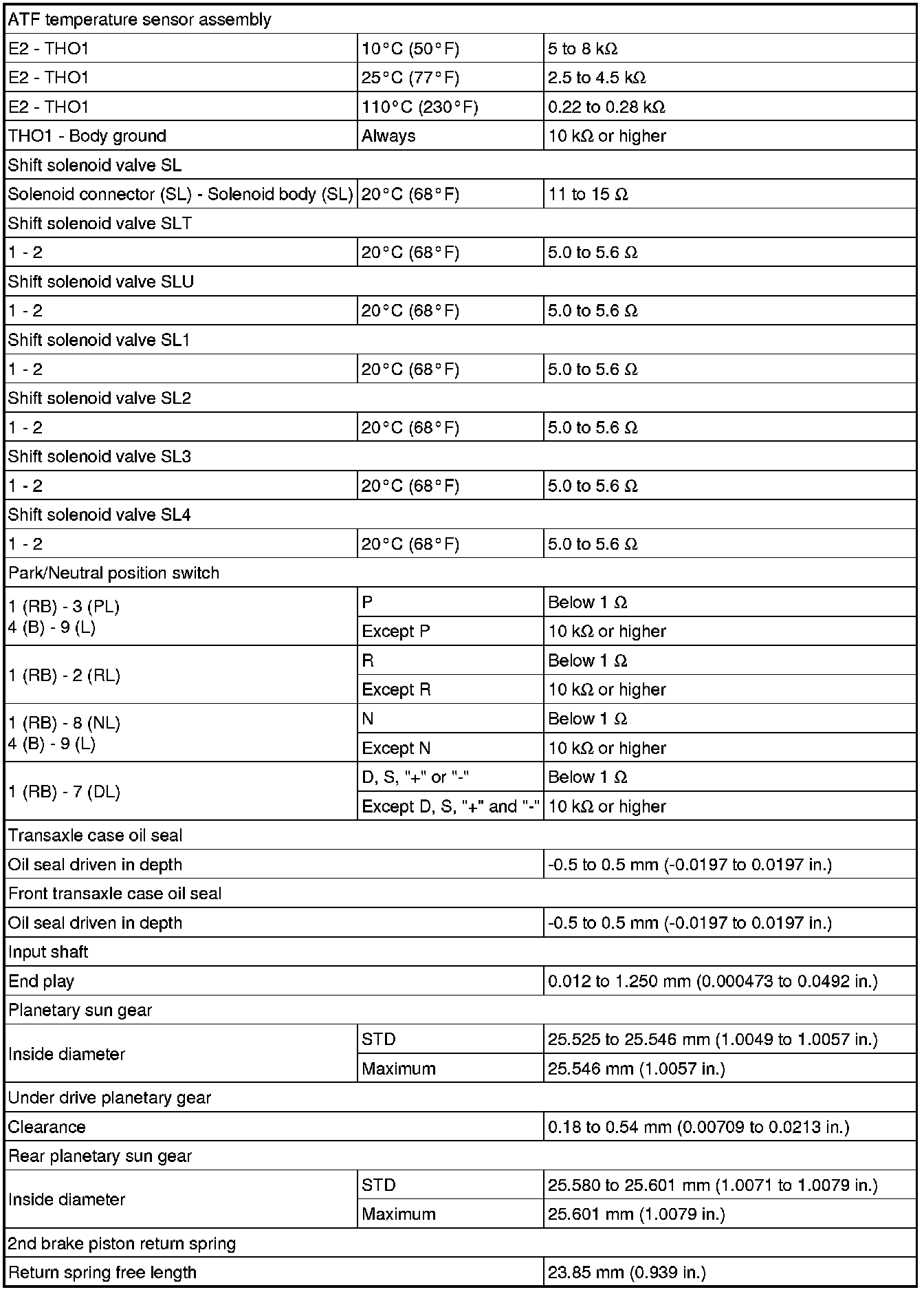SPECIFICATIONS: U660E AUTOMATIC TRANSMISSION / TRANSAXLE: SERVICE DATA