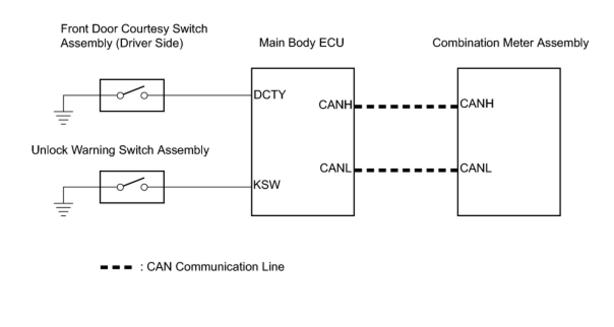 Since the key reminder warning system has functions that use CAN communication, firstly confirm that there is no malfunction in the communication system by inspecting the CAN communication functions in accordance with How to Proceed with Troubleshooting. Then, conduct the following troubleshooting procedure.